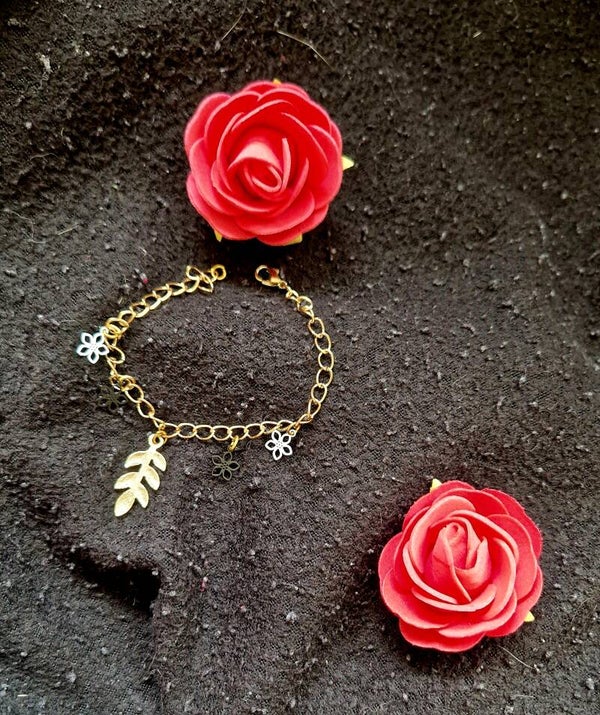 Bracelet doré feuille avec ces petites fleurs roses et blanches ou noires et blanches